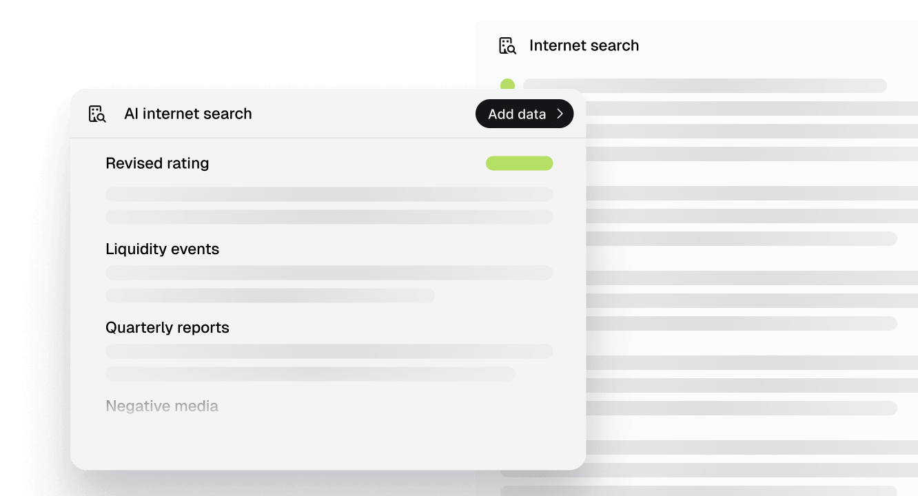 AI fetches unstructured financial signals — annual report notes, news, internet sources — to build a company picture no registry contains.